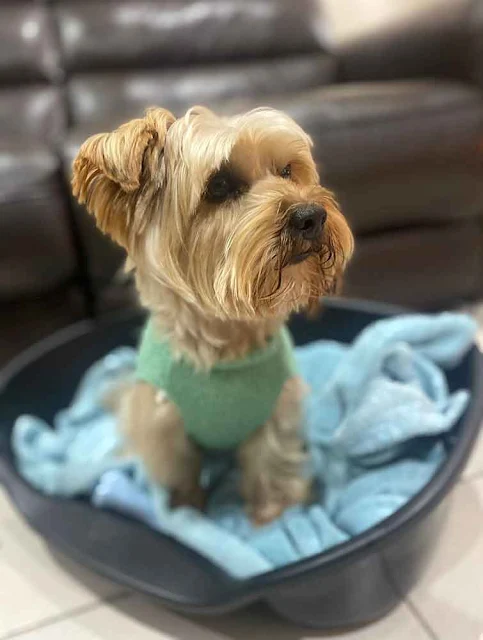 This Yorkie boy gets excited when going for car rides, and loves to snuggle up in his own little warm cosy bed.